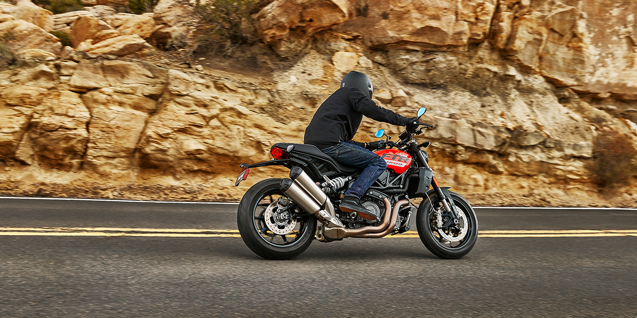 Egal ob Cruisen oder Beschleunigen, der kraftvolle Motor der FTR akzentuiert den Stil des Motorrads perfekt. Dreh die Lautsprecher voll auf!